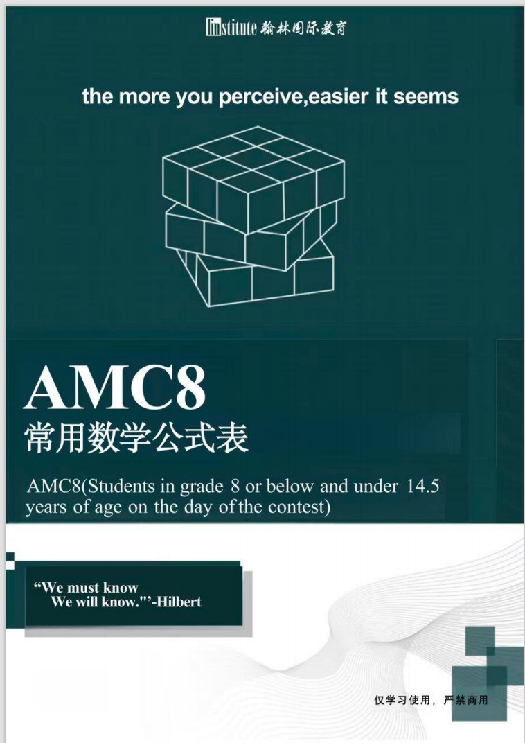 产品组合:清华出版社AMC8教材(纸质) + AMC8真题册双语版 + AMC8公式集 + 错题本(纸质) + AMC8体验课。