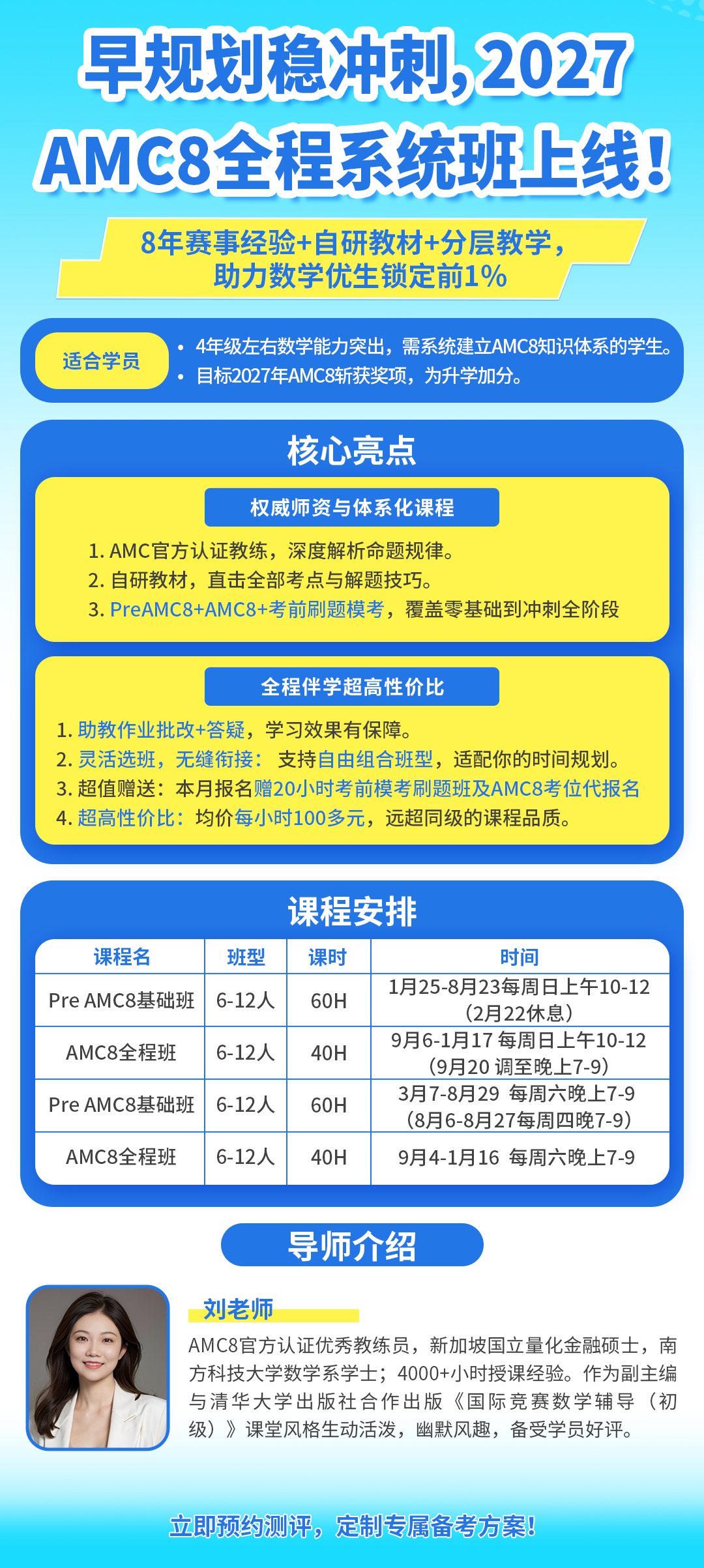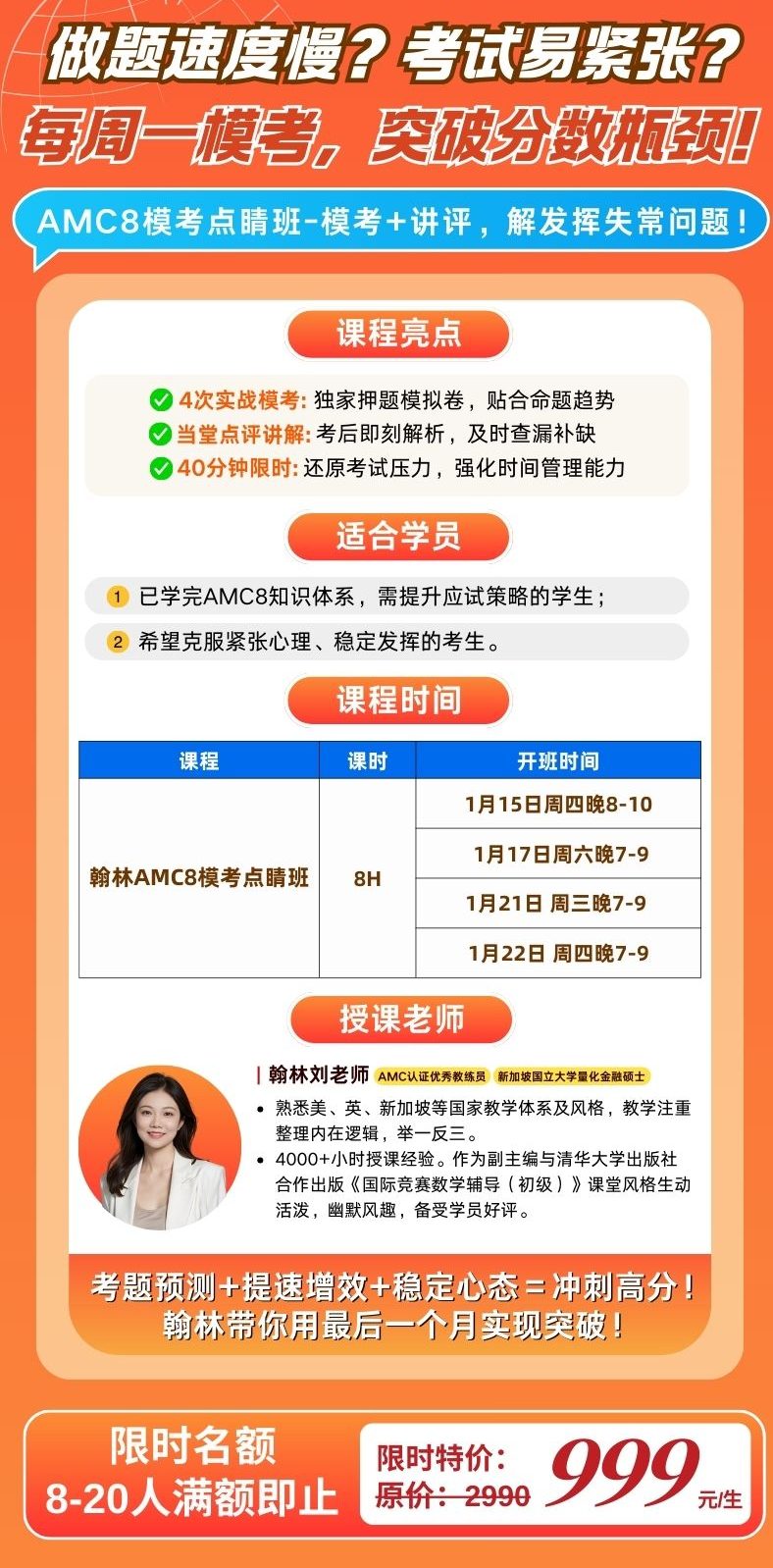 AMC8/10/12/AIME 9.9元试听课 滚动开班!