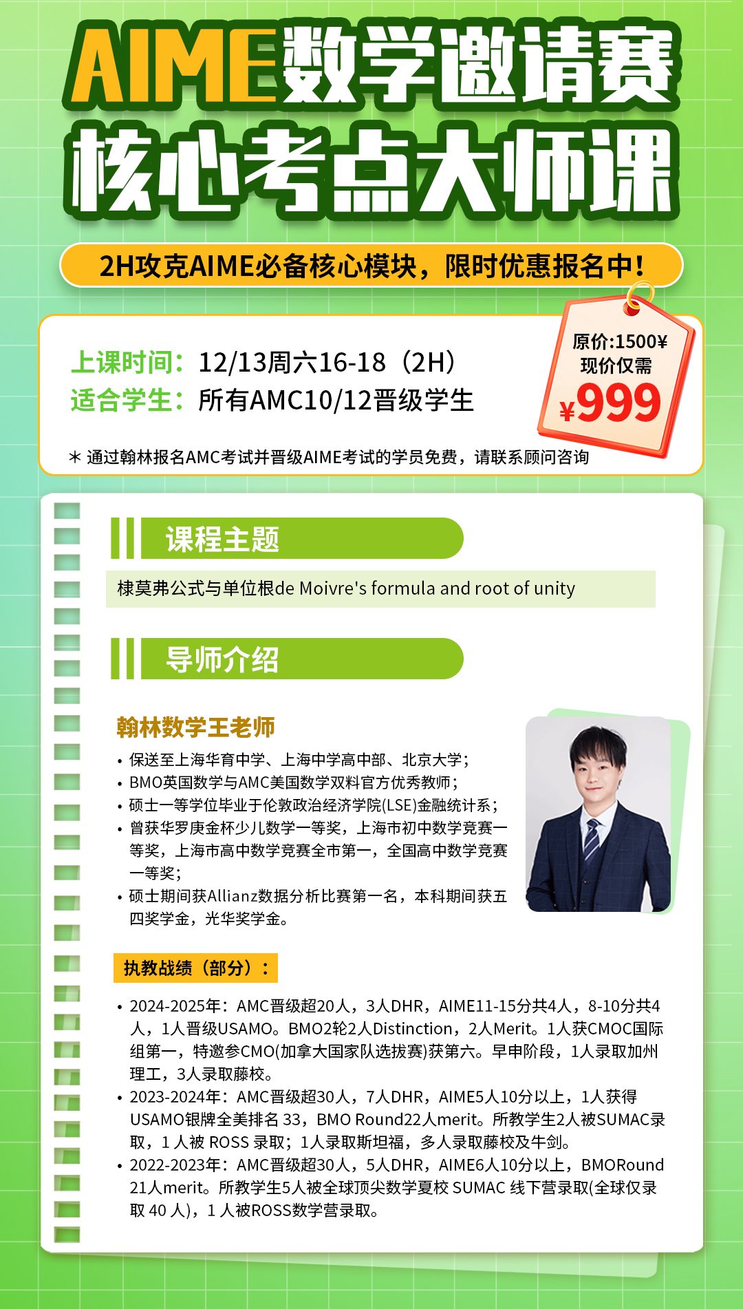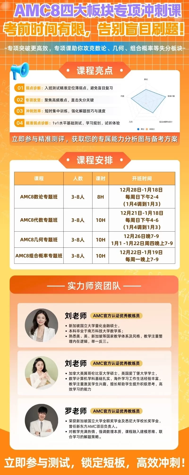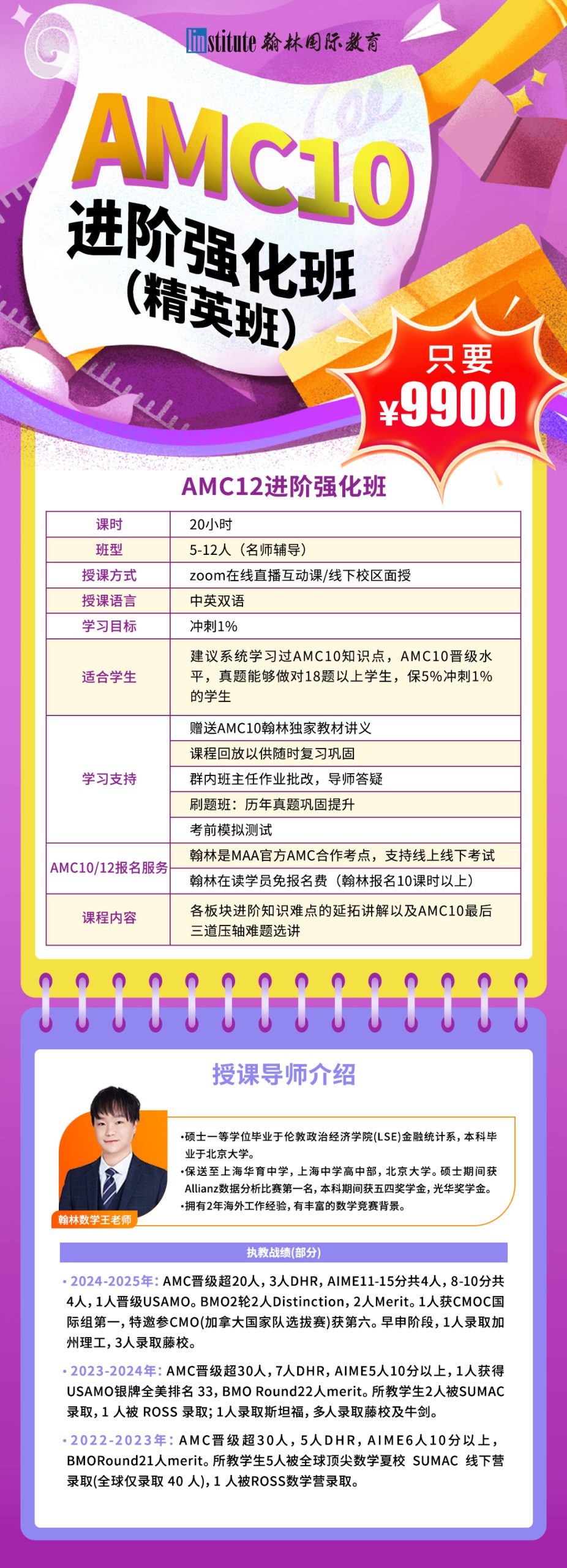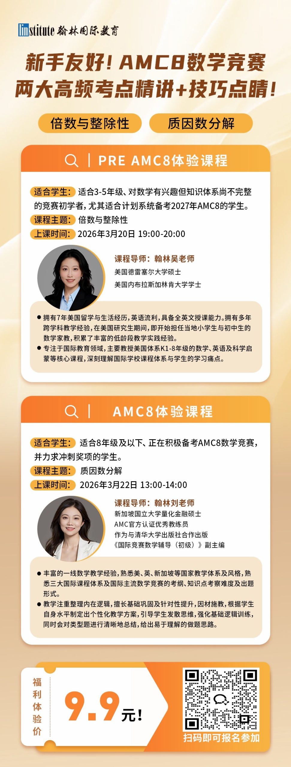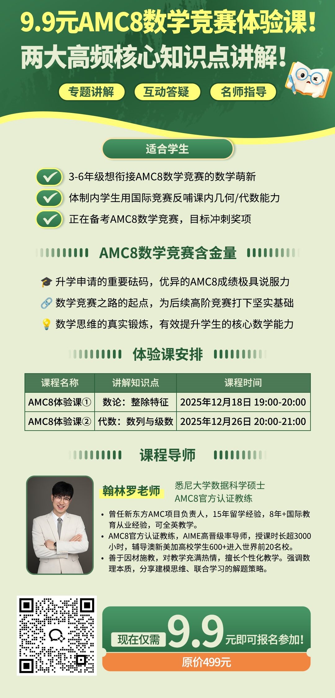 AMC8/10/12/AIME 9.9元试听课 滚动开班!
