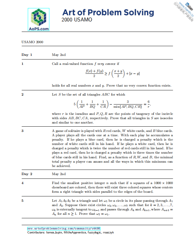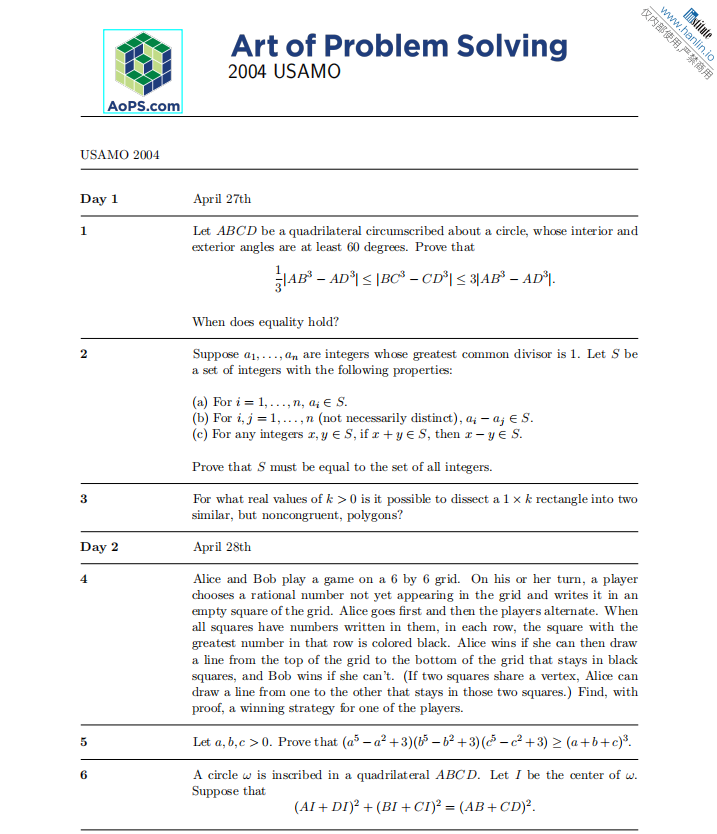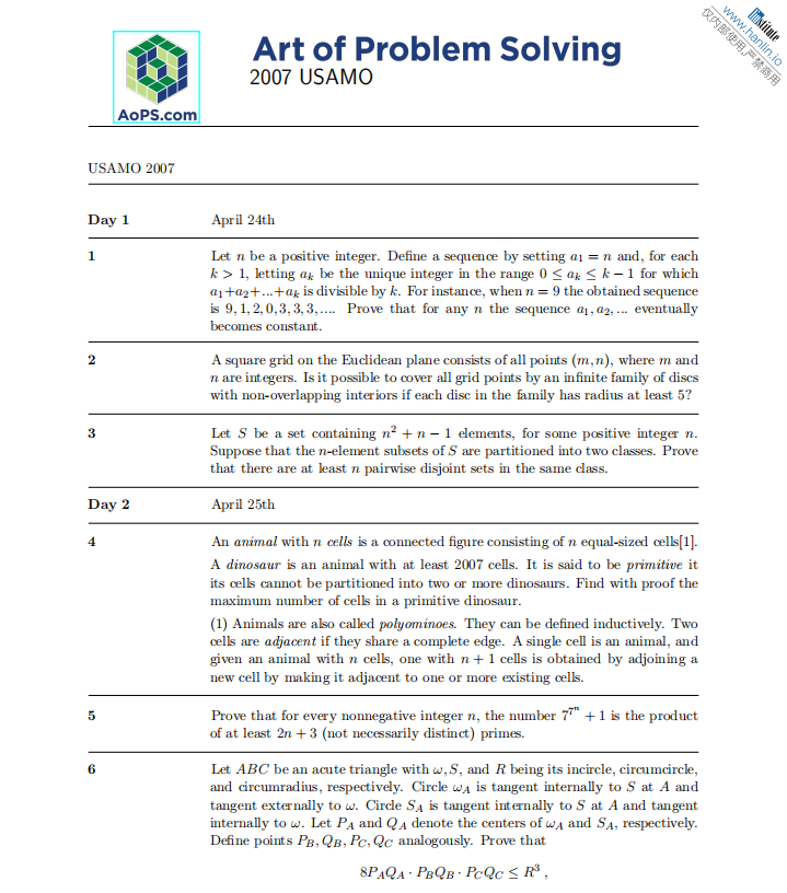 姊妹赛事:USAMO(面向11–12年级),两者难度相当,仅按年级区分;