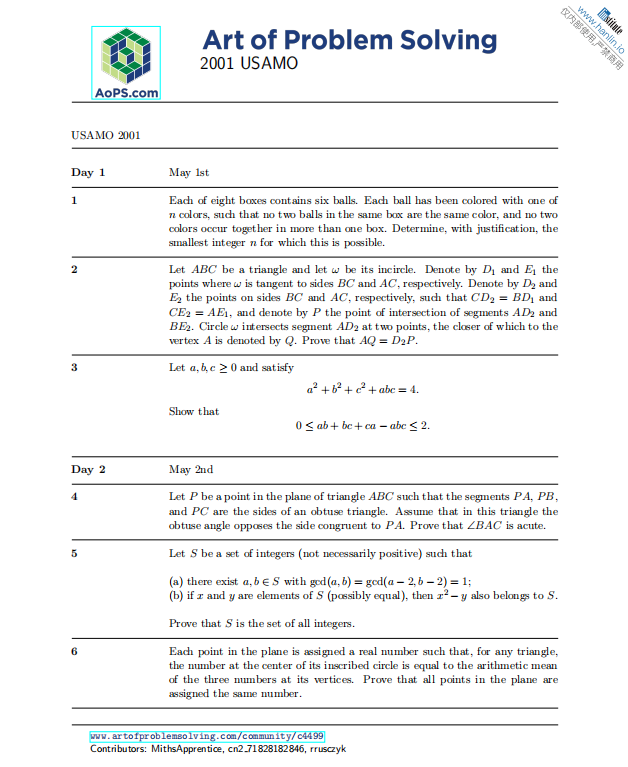 USA(J)MO 全球每年仅 约230人 晋级(USAJMO + USAMO 合计);