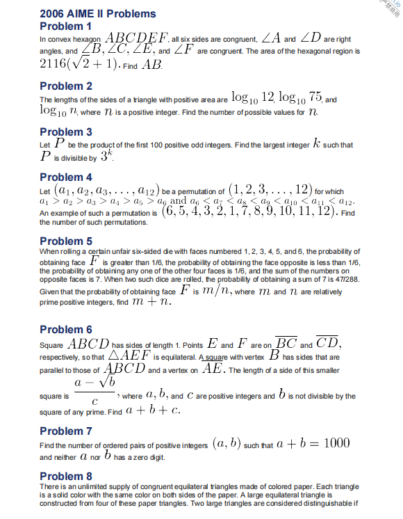 2006年AIME II 真题: