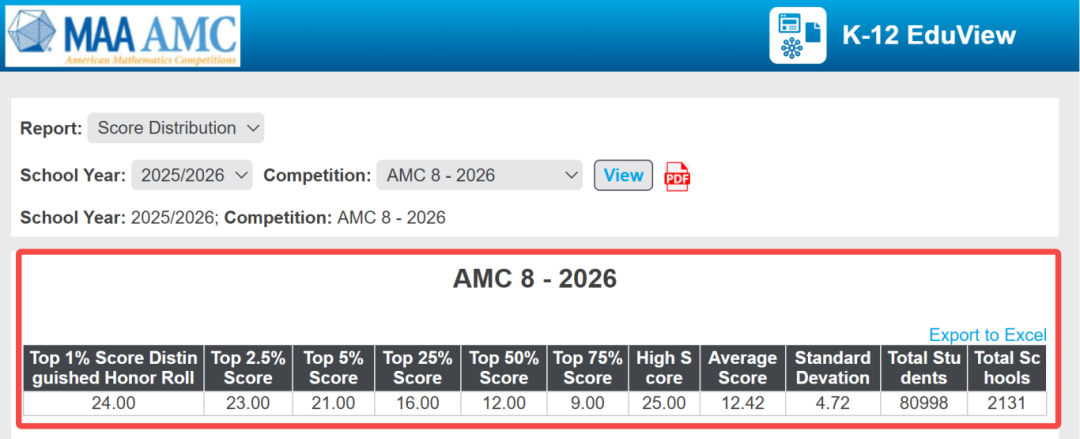 期待已久的2026年美国AMC8分数线已经正式公布了!今年分数线又再创新高!